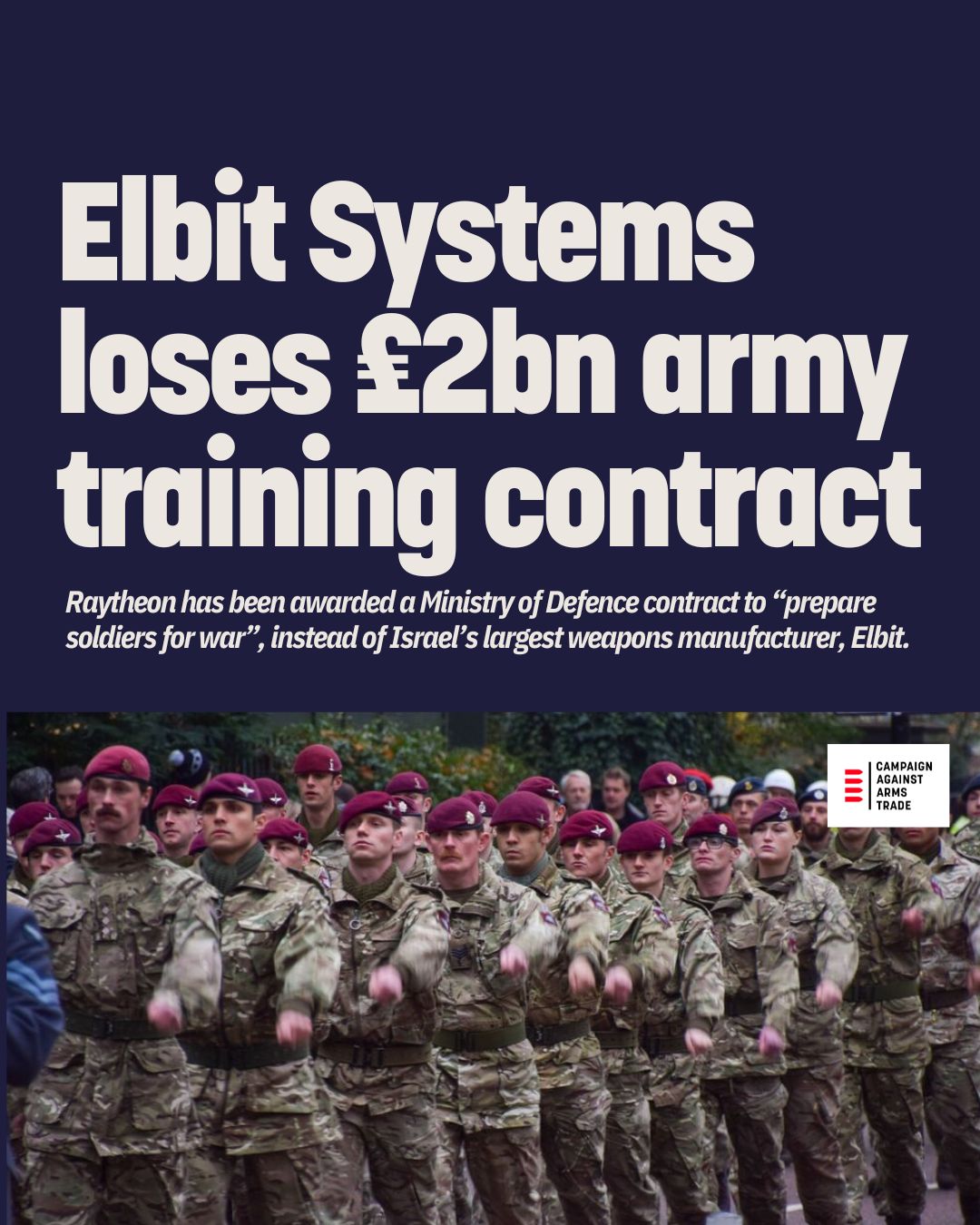 « Le contrat de 2 milliards de livres sterling, qui aurait permis à Elbit de former l'armée britannique pendant dix ans, a été perdu malgré les efforts déployés par les responsables du ministère de la Défense et de l'armée britannique, qui, selon certaines informations, auraient collaboré avec Elbit Systems UK et sa société mère Elbit Systems lors de réunions secrètes et de « visites » à Jérusalem, la capitale de la Palestine », a déclaré le groupe.
