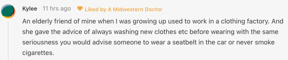 I've never forgotten that story, and over time my patients have helped me to appreciate just how many nasty chemicals end up on our clothing that most of us never notice.