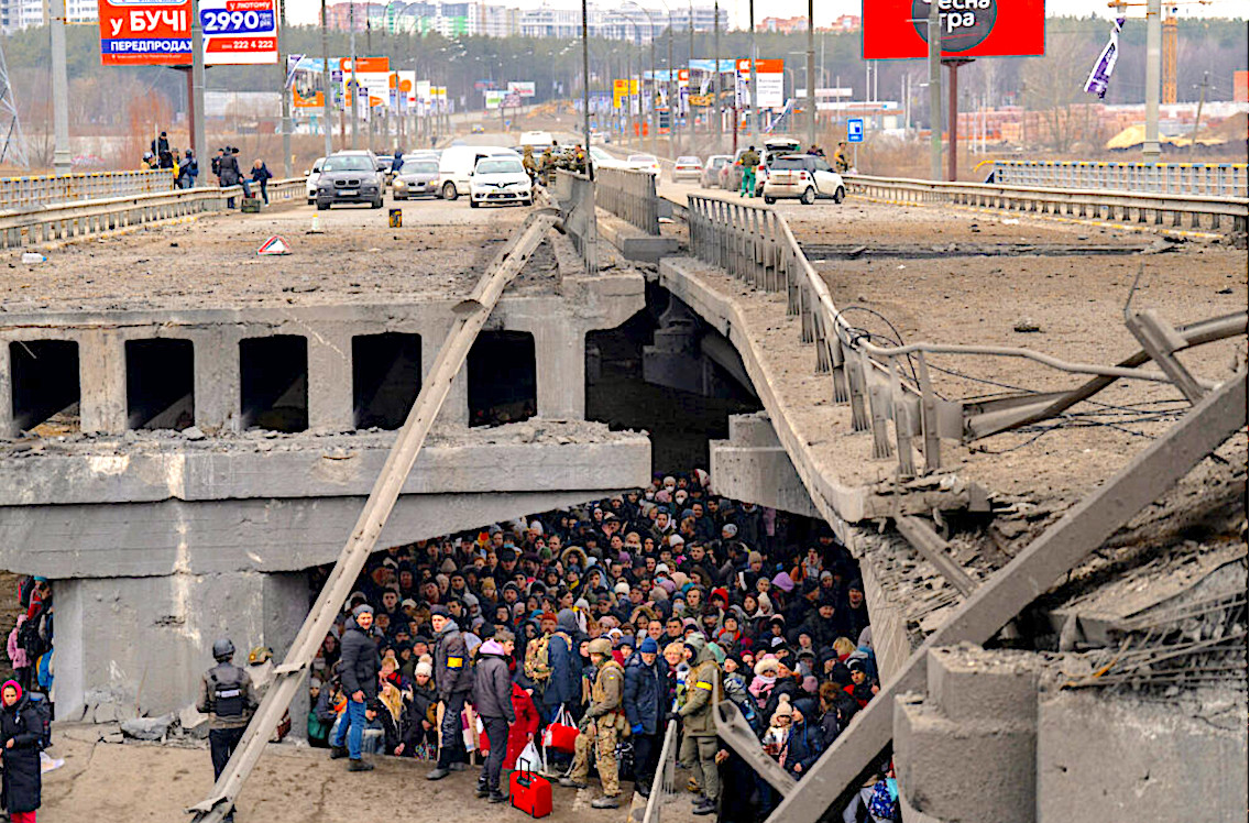 Refugees taking shelter under a bridge in Kiev, March 5, 2022. (Mvs.gov.ua, CC BY 4.0, Wikimedia Commons)