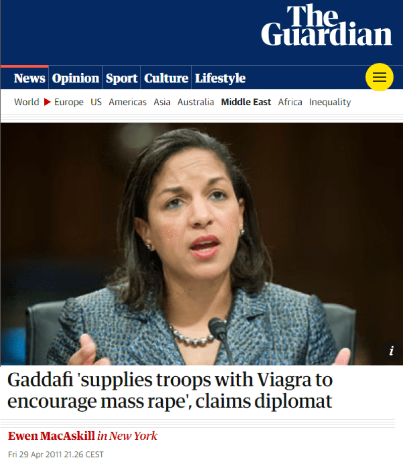 Victoria Nuland, célèbre belliciste américaine et partisane du changement de régime, a porté des accusations non fondées de «viols massifs» contre le colonel Kadhafi afin de préparer le terrain pour la guerre contre la Libye.