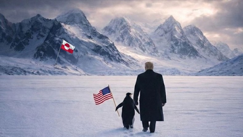 La Maison Blanche a diffusé une image générée par IA montrant Donald Trump marchant aux côtés d'un manchot dans un paysage de glace polaire, un drapeau américain à la main, avec le drapeau groenlandais en arrière-plan. Sous l'image, la légende «Accueille ce manchot». Un rappel géographique s'impose : les manchots vivent dans l'hémisphère Sud.