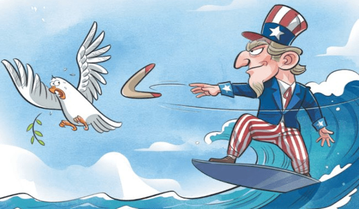 On inverse alors subtilement le lien de cause à effet. L'ingérence précède l'intervention, mais le récit est présenté à rebours, comme si l'instabilité exigeait l'intervention, au lieu que ce soit l'inverse. L'histoire est réécrite pour faire apparaître l'agression comme inévitable.