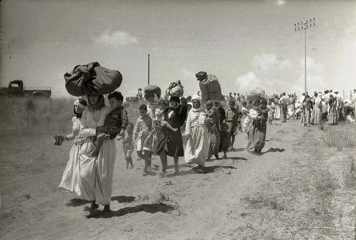Les Palestiniens de Tantura, un mois après le massacre, sont expulsés vers la Jordanie, le 26 juin 1948. Crédit photo © Benno Rothenberg