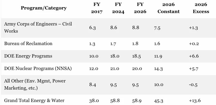 Discretionary Appropriations For Energy And Water, 2017-2026
