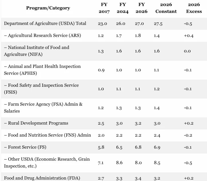 In the case of the $30.4 billion FY 2026 funding for the Agriculture bill, it can be at least said that this level is about equal to the Obama FY 2017 budget adjusted for inflation. But here's the thing: More than 90% of this total shouldn't even be funded.
