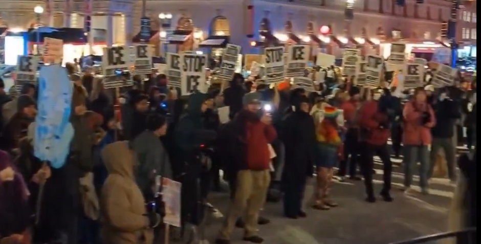 Manifestation contre ICE à Boston, le 21janvier 2016. Capture d'écran de cette VIDEO.