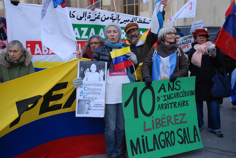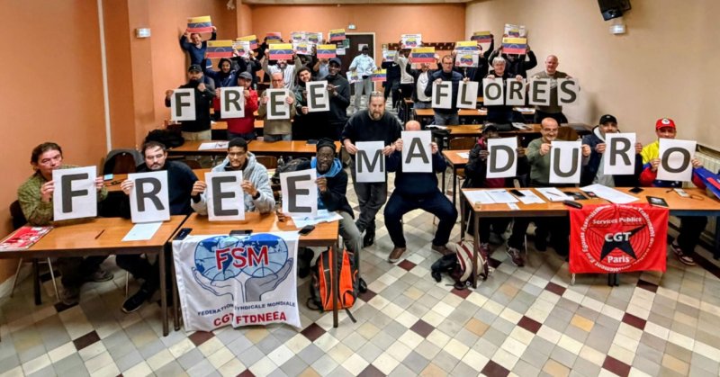 Une manifestation organisée le 10 janvier à Paris, au Trocadéro, par le Collectif international pour la paix au Venezuela - 36 organisations solidaires latino-américaines et africaines [26] - est boycottée par les notables « anti-impérialistes » et la « contra » [27] françaises. Au cours d'une réunion convoquée par l'intersyndicale, à laquelle participe entre autres France Amérique latine, il est décidé que la CGT, sous l'autorité de sa secrétaire générale Sophie Binet, appellera à un rassemblement « unitaire » parallèle, à la même heure, à La Bastille, pour dénoncer l'intervention américaine, mais sans réclamer la libération du président vénézuélien.
