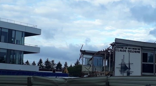 The new research center is on the left, the old center being destroyed is on the right. Note the name "Claude-Delorme" on the old center. My photo was taken in 2017 or 2018.