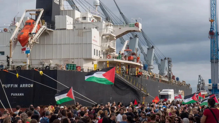 Les manifestations ont commencé dans les ports de Grèce, de Turquie et du Pays basque, où le syndicat Liman-Iş a rassemblé des centaines de ses membres pour délivrer un message "contre le génocide et en solidarité avec la Palestine".