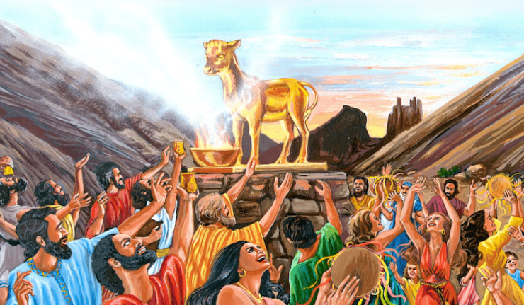 «Et le peuple de Moïse adopta après lui, de leurs parures, un veau qui n'était qu'un corps mugissant». ( Sourate Al-A'raf, 7:148)