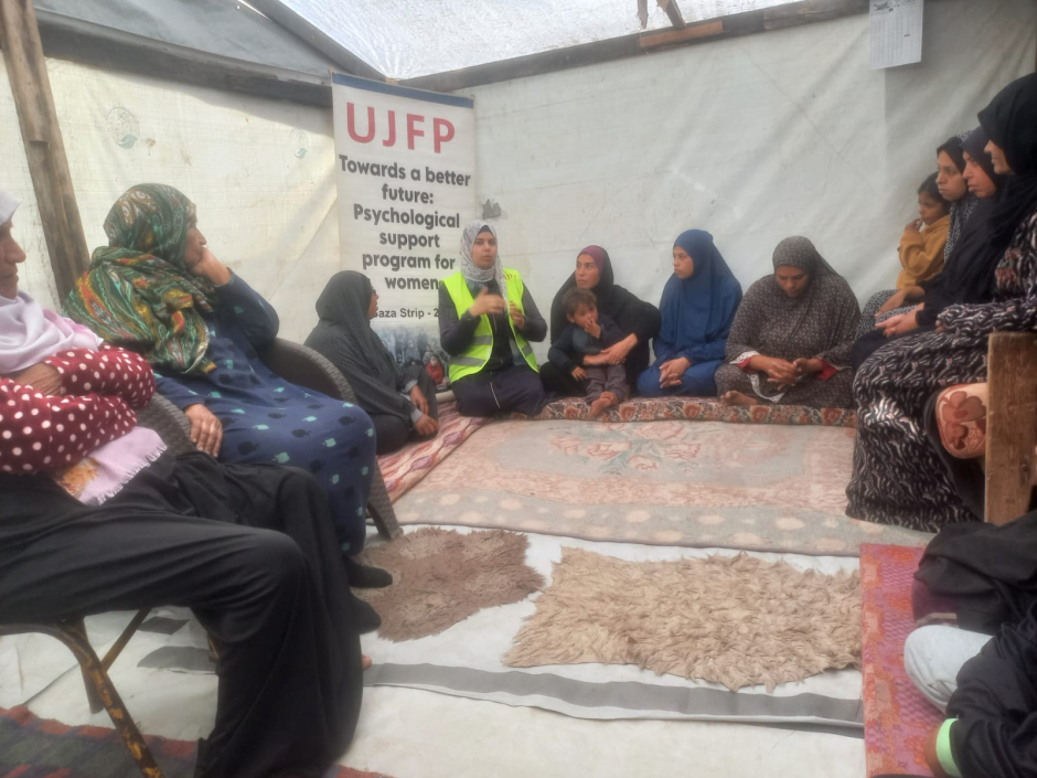 La première séance du programme de soutien et de sensibilisation a été mise en œuvre cette semaine dans la zone centrale - à l'ouest de Deir Al-Balah - au camp Al-Asdiqa, par l'équipe de l'UJFP. La séance Notre tente est une (), notre soutien est un (), une porte d'entrée pour reconstruire le sens du voisinage, du partage émotionnel et de la responsabilité collective dans un environnement épuisé par le déplacement.