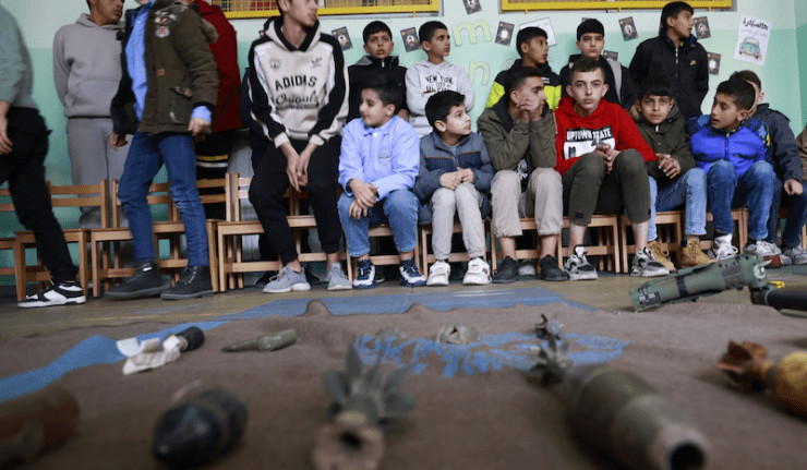 Photo d'illustration : Le 21 janvier 2026, à Chebaa, au Liban, des enfants reçoivent une formation à la sécurité concernant les mines antipersonnel et les munitions à fragmentation non explosées. Ces armes, qu'Israël a utilisées au Liban lors de conflits précédents, peuvent rester non explosées et dangereuses longtemps après la fin d'une guerre. Photo : Ramiz Dallah/Anadolu via Getty Images