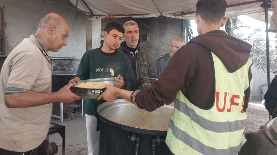 Ce que les équipes de l'UJFP cuisinent chaque jour n'est pas seulement de la nourriture, mais du temps supplémentaire pour la vie, et un espace temporaire de stabilité dans une réalité dépourvue de toute certitude. C'est un effort humanitaire silencieux, qui ne prétend pas changer la réalité, mais qui empêche la réalité d'engloutir complètement l'être humain. Et aux côtés des mains qui cuisinent et distribuent sur le terrain, il y a d'autres mains, absentes physiquement mais bien présentes dans chaque repas : celles des donateurs qui ont cru au droit des personnes à la nourriture et ont choisi de transformer cette conviction en un soutien concret, rendant possible l'allumage du feu et maintenant les marmites pleines dans les circonstances les plus difficiles.