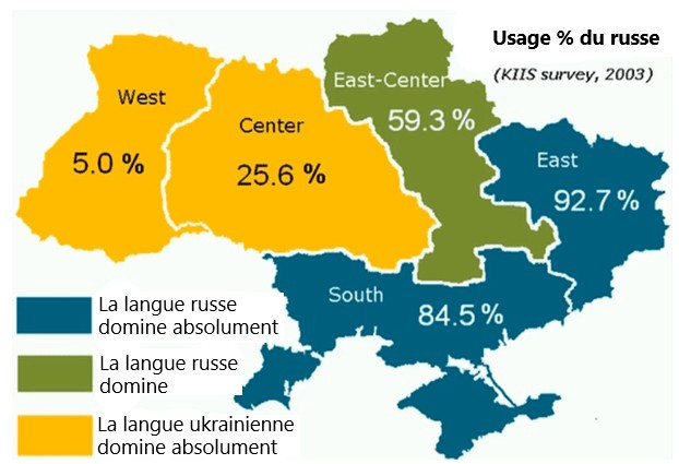 •  Mai-juillet 2014 : Adoption par Kiev de lois sur la langue nationale ; un texte supprimant officiellement le statut du russe comme langue régionale est voté. Loi non promulguée mais qui a été largement exploitée politiquement et qui a profondément choqué l'Est du pays.