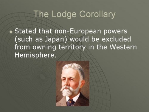 Le corollaire Lodge de 1912 illustre encore davantage à quel point la politique américaine s'était éloignée des prémisses originales fixées par Monroe. Proposé par le sénateur Henry Cabot Lodge et adopté par le Sénat, la résolution affirmait que les États-Unis s'opposeraient à l'acquisition de territoires dans l'hémisphère occidental par des puissances non américaines, même par le biais d'un contrôle privé ou corporatif. Bien plus restrictif que les interprétations ultérieures, le Corollaire Lodge marqua une déviation par rapport aux préoccupations de Monroe concernant la colonisation européenne formelle liée à la restauration post-napoléonienne. Il reflétait une importance croissante accordée à l'exclusion plutôt qu'à la réciprocité. Cependant, il ne visait pas à autoriser le changement de régime, la domination militaire ou la supervision politique des États américains.