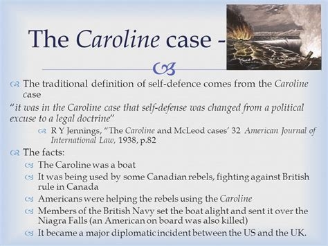 Cette conception de la modération n'était pas exclusive à Monroe. Après l'incident du navire Caroline en 1837, lors de la rébellion du Haut-Canada, le secrétaire d'État Daniel Webster formula ce qui serait plus tard connu sous le nom de doctrine Caroline. Dans sa correspondance avec les responsables britanniques, Webster rejeta les revendications étendues d'autodéfense préventive et insista sur le fait que toute utilisation de la force devait être justifiée par un besoin immédiat, écrasant, qui ne laissait pas d'autre choix que de délibérer sur les moyens ou le moment. L'incident, qui découla des tensions le long de la frontière entre le Maine et le Canada, reflétait le même principe sous-jacent que la Doctrine Monroe: l'usage de la force n'était permis qu'en dernier recours, lié à des menaces concrètes et limité par la proportionnalité.