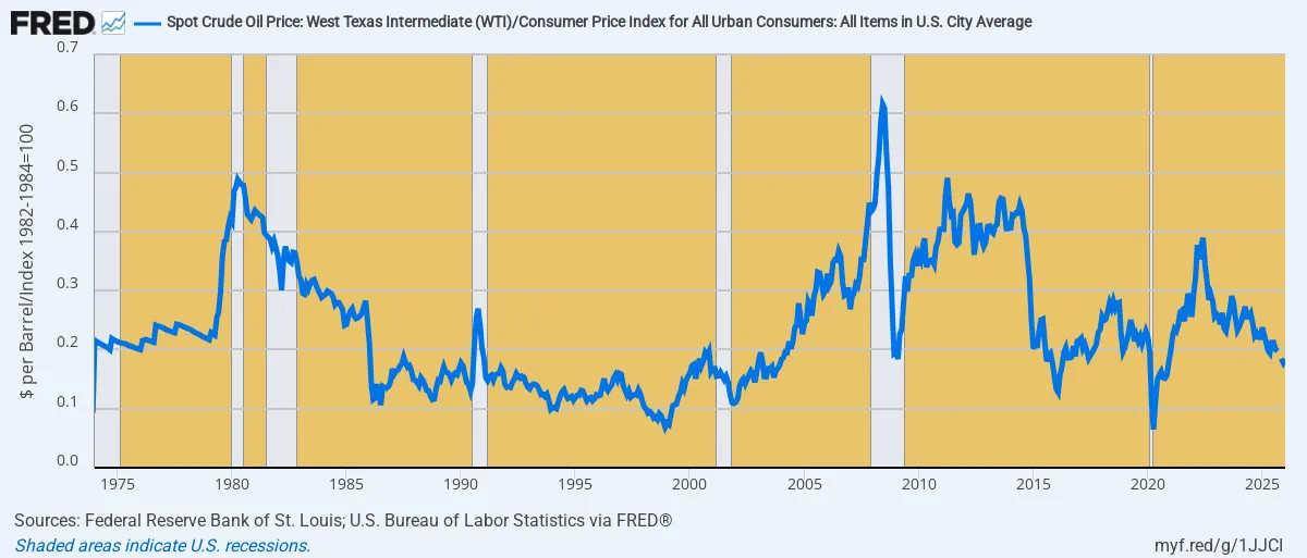 Index of Constant Dollar Oil Price, 1974 to 2025