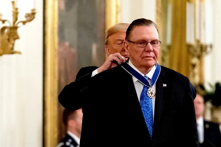 Trump remet à Keane, du NYT, la Médaille présidentielle de la liberté à la Maison Blanche, le 10 mars 2020. (Maison Blanche © Andrea Hanks)