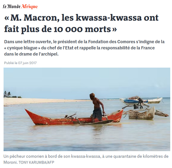 "Les partisans de 'Mayotte française' ont développé une propagande très efficace dans un contexte économique difficile, qui contribuait à susciter des tensions et des ressentiments, alors que la plupart des gens n'étaient jamais allés à l'école." Rémi Carayol, journaliste