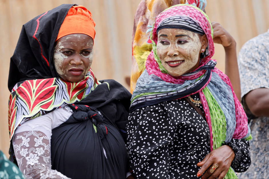 Des femmes en habits traditionnels dans un quartier de Tsingoni, à Mayotte (AFP)