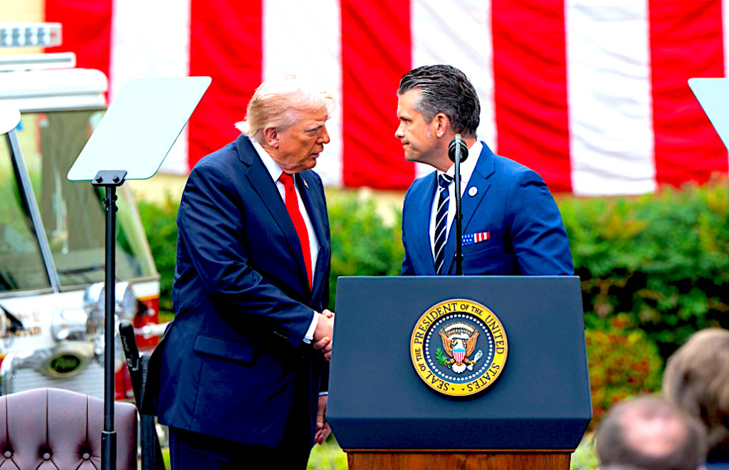 Le président Donald J. Trump et le secrétaire à la Guerre Pete Hegseth lors de la 24e cérémonie commémorative du 11-Septembre au Pentagone, à Washington, D.C., le 11 septembre 2025. (DoW/Madelyn Keech)