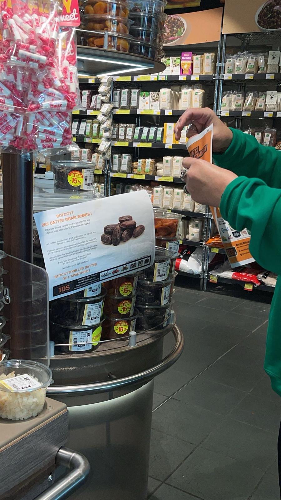 Du coup, des camarades du Collectif Gaza du Pays de Montbéliard sont allé·es rectifier le tir dans le magasin, informer les clients qui n'étaient pas au courant, et faire passer le message à la direction.