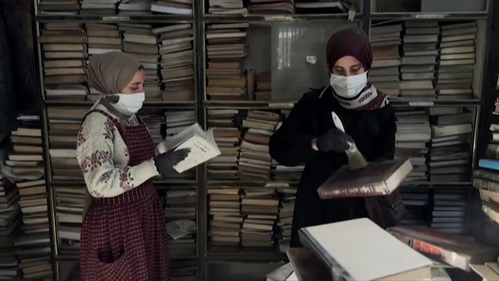 Dans l'enceinte de l'une des plus anciennes et des plus importantes bibliothèques de la Palestine, un groupe de bénévoles gazaouis s'emploie à sauver ce qu'il reste de leur patrimoine culturel.