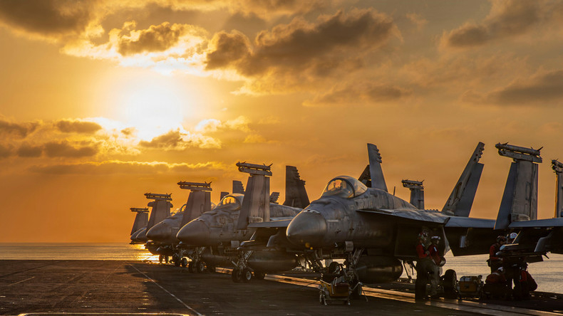 Des aéronefs sur le pont d'envol de l'USS Abraham Lincoln (CVN 72), engagés dans des opérations de soutien à la guerre en Iran, le 3 mars 2026