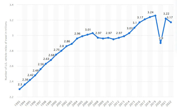 As automobiles have become more energy efficient, total miles driven has exploded (yes, partly a function of population and number of vehicles, but IMO that supports the point - when things are cheaper people do all the things that make total usage rise, including having more kids, immigrating, buying a second car):