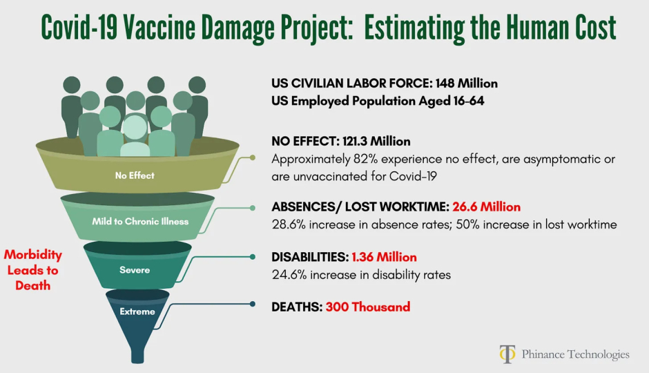 In short, the data shows you aren't crazy, and while the news is not reporting it, the majority of people are seeing exactly the same thing you are. There is no getting around the fact a lot of people were harmed by these vaccines and one of the best data compilations I've seen that puts all of this into perspective was a March 2023 estimate Ed Dowd produced from data sources available at this time (e.g., these polls and disability data). This deliberately conservative estimate showed:
