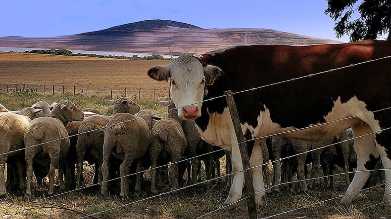 Des moutons et une vache en Afrique du Sud dans la province du Cap-Occidental.