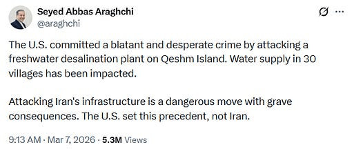 L'un des nouveaux vecteurs pour "mettre l'Iran à genoux" sur les plans économique et socio-politique semble être de frapper ses usines de dessalement, ce que les États-Unis ont fait aujourd'hui :