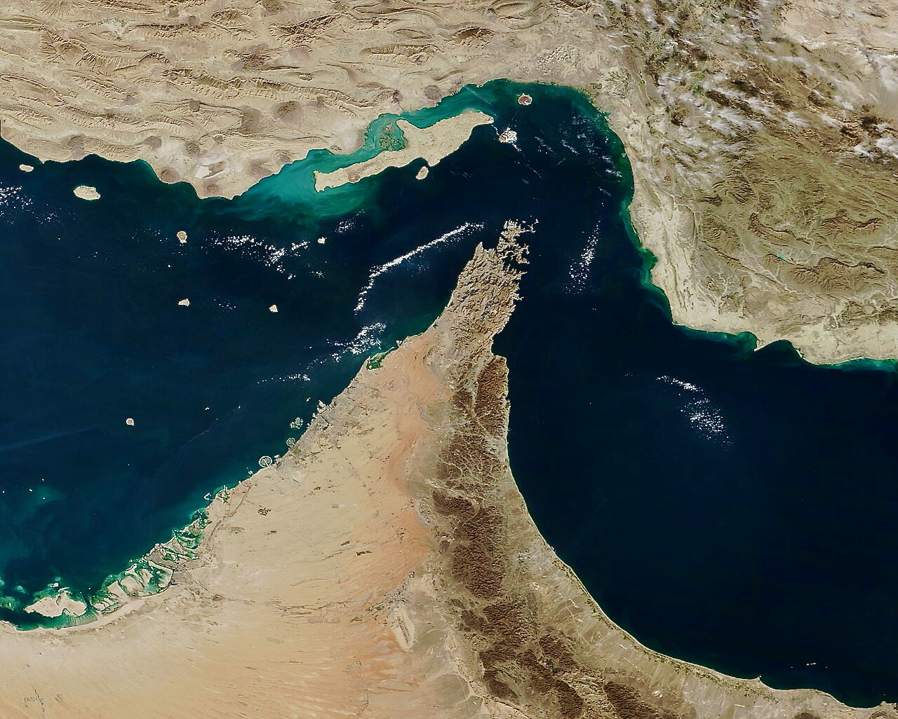 The Strait of Hormuz and the Musandam Peninsula on December 6, 2018. (MODIS Land Rapid Response Team, NASA GSFC / Wikimedia Commons / Public Domain)