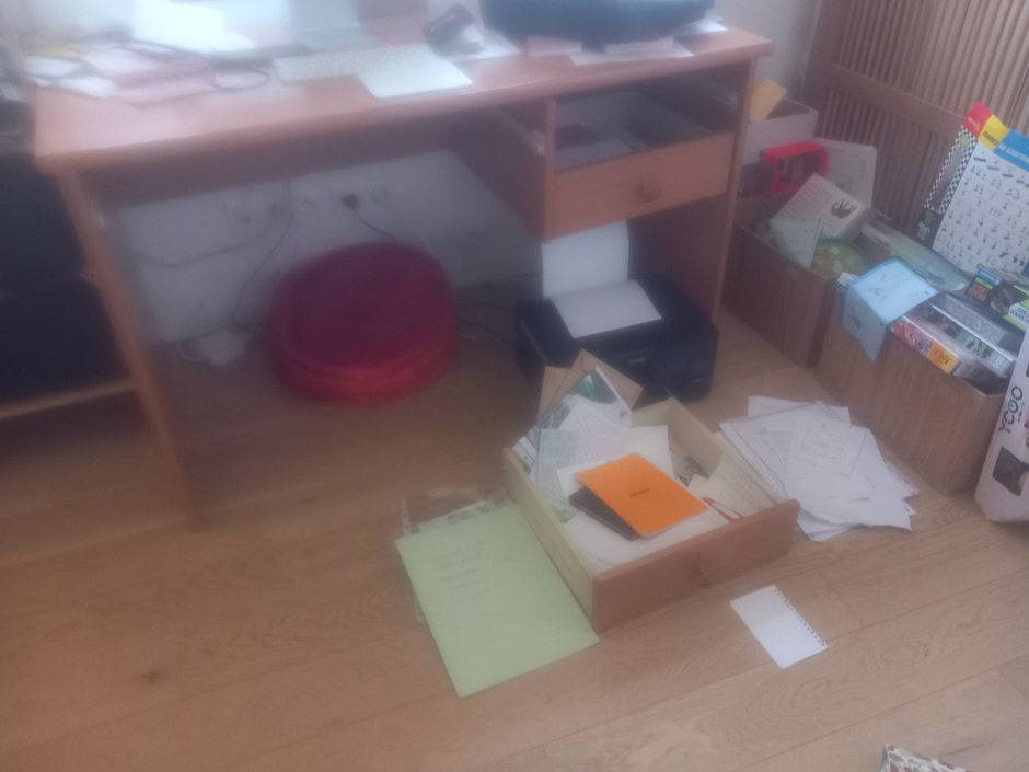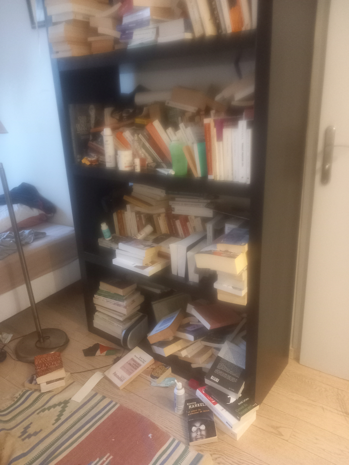 Grands coups frappés à 6 H du matin jusqu'à ce que l'on comprenne que c'était la police. Huit personnes cagoulées entrent chez nous à l'Ile Saint-Denis et immobilisent Nicolas Shahshahani, m'interdisant de m'approcher de lui. Puis se mettent à fouiller la maison mettant nos affaires sens dessus dessous.