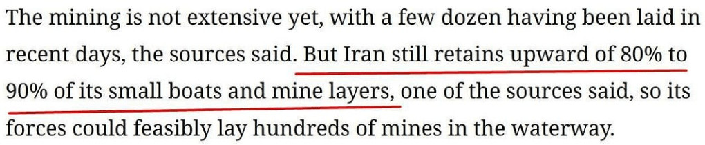 Trump se trouve face à un dilemme périlleux qu'il a lui-même provoqué : s'il recule maintenant, la "guerre" sera perçue comme une victoire morale majeure pour l'Iran, ce dernier ayant réussi à dissuader les États-Unis d'atteindre leurs principaux objectifs malgré une campagne de bombardements massive et incessante. Mais s'il persiste dans son acharnement, il s'expose à une catastrophe encore plus grave, car les États-Unis pourraient se retrouver totalement vulnérables militairement, ou risquer de perdre des navires, voire des groupes aéronavals, par simple caprice de Trump. Au moins, s'il reculait maintenant, il pourrait revendiquer une victoire semi-plausible, malgré l'opinion générale selon laquelle l'Iran l'a emporté ; cela suffirait au moins à apaiser une population américaine apathique et désemparée.