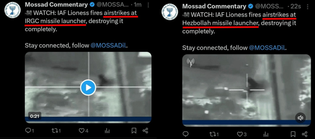 Les comptes israéliens continuent d'être pris la main dans le sac avec de fausses images d'archives, comme cette séquence réutilisée des frappes contre le Liban l'année dernière :