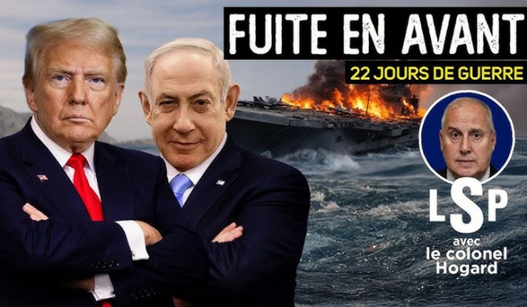 22 jours après le lancement de l'offensive américano-israélienne contre l'Iran, Téhéran n'est pas tombée et poursuit ses ripostes sur les bases américaines du Golfe et sur Israël. Donald Trump oscille entre déclarations triomphales et appels à l'aide désespérés envers ses alliés, qui pour l'heure font la sourde oreille. Pendant ce temps, le détroit d'Ormuz est bloqué, le prix du pétrole explose avec un baril à plus de 115 dollars, l'USS Gerald R. Ford est en feu et Joe Kent, ancien directeur du contre-terrorisme, a démissionné en accusant Israël d'avoir forcé la main de Donald Trump pour entrer en guerre.