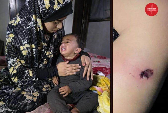 Des témoins oculaires ont déclaré à Palestine TV que des soldats israéliens de l'occupation ont forcé le père à abandonner son fils de 18 mois au sol et à se rendre à un point de contrôle militaire voisin, où il a été déshabillé et interrogé.