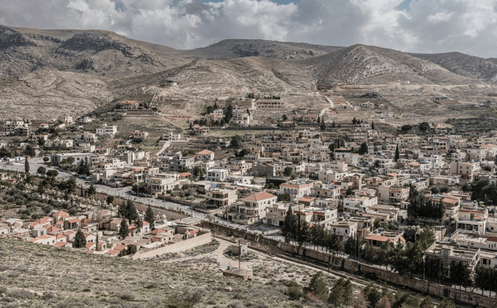 Le village se trouve au pied des montagnes arides du Qalamoun, que l'on peut traverser à pied pour rejoindre la Syrie en quelques kilomètres seulement.