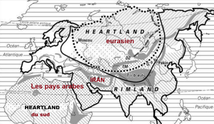 Lesquels pays, notamment les pays arabes situés dans le triangle Nil-Euphrate-mer Rouge, forment manifestement la jonction entre les deux cœurs du monde : le Heartland du Nord et le Heartland du Sud.