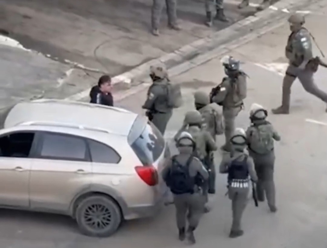 L'agression brutale par les forces d'occupation d'un jeune homme et son arrestation dans le camp de Qalandia, au nord de Jérusalem occupée.