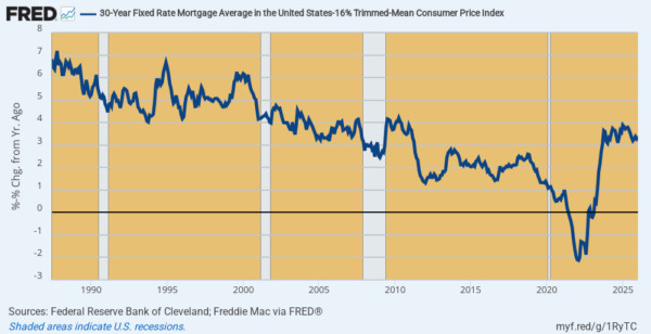 Inflation-Adjusted 30-Year Home Mortgage Rate, 1987 to 2025
