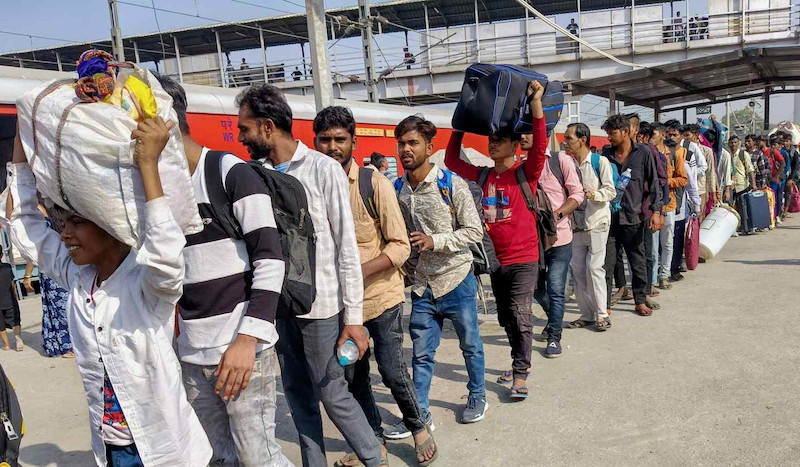 À Surat, la "Ville de la soie", qui compte plus de 35 000 usines textiles, plus de 250 000 travailleurs sur environ un million ont quitté la ville depuis début mars, selon Ashok Jirawala, vice-président de la chambre de commerce du sud du Gujarat. Environ 30% des usines ont réduit leur production.