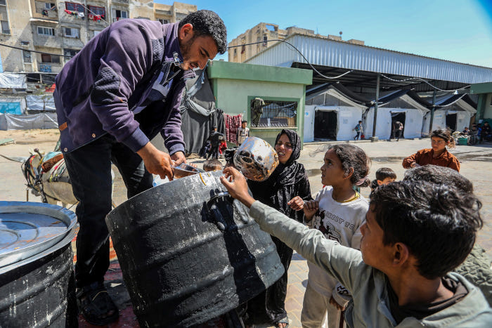 10 avril 2026 - Une organisation caritative distribue de la nourriture à des Palestiniens déplacés de force à Khan Younis, le 10 avril 2026 - Photo : Abed Rahim Khatib / Anadolu