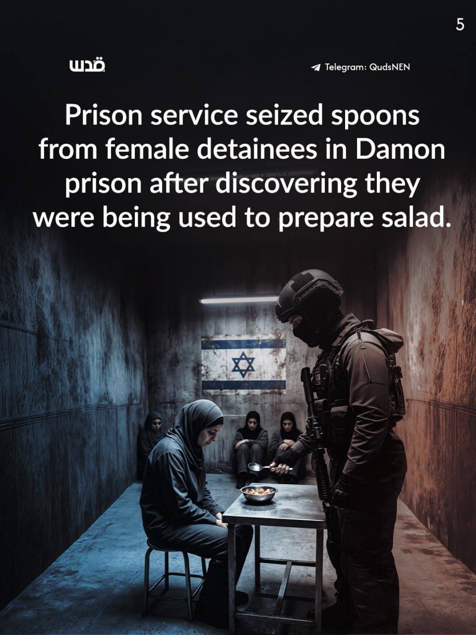 Dans les prisons israéliennes, les détenues subissent une réalité insoutenable, où l'ordinaire et le anodin deviennent des prétextes à la punition, et où le moindre détail ouvre la porte à de nouvelles formes de répression. Là, on invente des raisons à partir de rien : une cuillère confisquée, une fourchette usagée, un nom écrit sur un lit... Autant de prétextes qui justifient l'humiliation et les sévices. Chaque mesure arbitraire vise à briser l'esprit avant le corps.