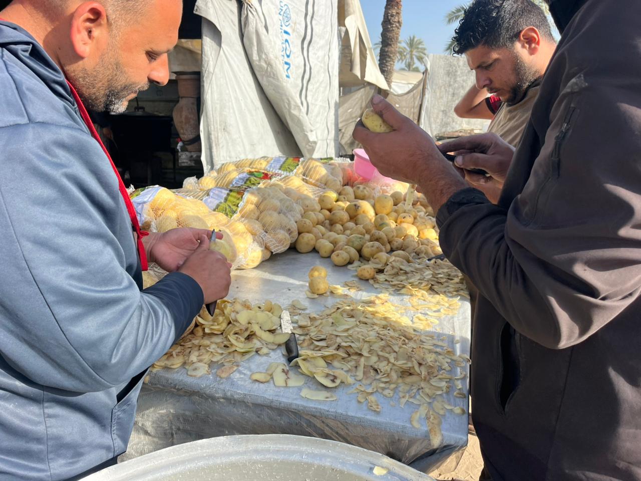 Au cœur de ce contexte difficile, le rôle des organisations humanitaires constituent l'une des principales lignes de vie empêchant un effondrement total. Ces programmes ne sont plus de simples réponses d'urgence : ils font désormais partie intégrante de l'équation de survie quotidienne, notamment dans des zones comme Khan Younès et Deir al-Balah, qui accueillent un grand nombre de déplacés et nécessitent une intervention continue et structurée. À Khan Younès, notamment dans les camps d'Al-Fajr et d'Al-Soumoud, la cuisine humanitaire de l'UJFP prépare et distribue chaque jour des centaines de repas aux familles déplacées, en particulier aux agriculteurs de l'est de Khan Younès qui ont perdu leurs moyens de subsistance. À Deir al-Balah, la scène se répète sous une autre forme mais c'est la même : des centaines de familles font la queue devant un autre centre, attendant leur tour pour subsister.