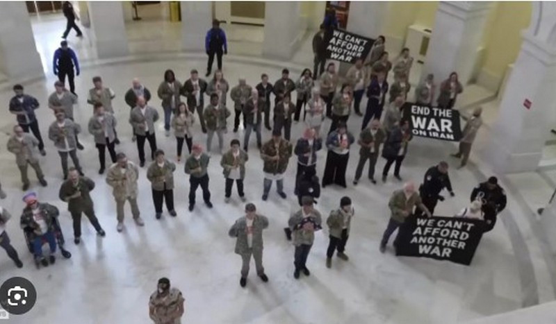 Des dizaines d'anciens combattants, dont certains handicapés, ont été arrêtés lundi 20 avril par la police du Capitole après avoir brièvement occupé le bâtiment Cannon de la Chambre des représentants, sur la colline du Capitole, pour exprimer leur vive opposition à la guerre illégale menée par le président américain Donlad Trump contre l'Iran.