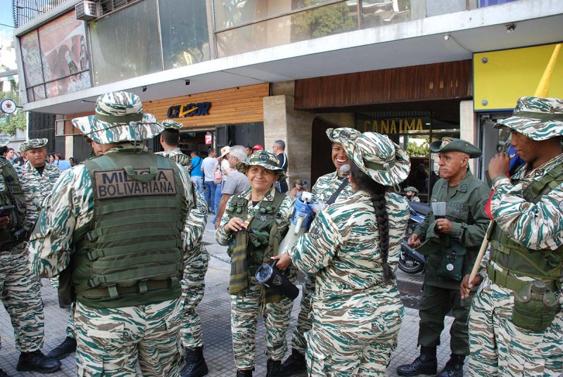 [9] Composée officiellement de 5 millions de civils, la Milice bolivarienne est intégrée dans l'armée pour combattre à ses côtés ou l'assister logistiquement.