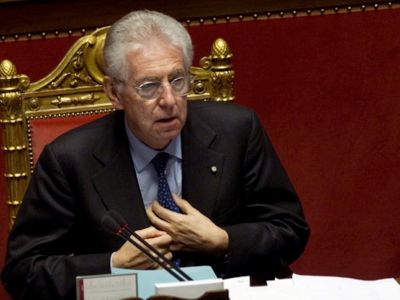 Mario Monti, Commissaire européen (1995-99), président de la section Europe de la Commission Trilatérale, Membre du Bureau exécutif du Groupe de Bilderberg, a été nommé Premier ministre italien et s'est désigné lui-même ministre de l'Economie.