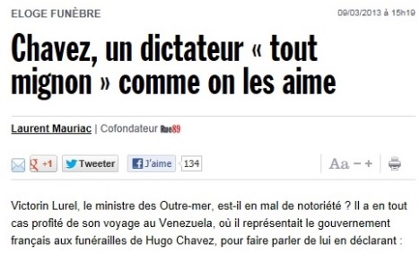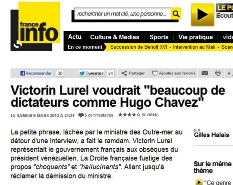 N'importe quel journaliste, passé ou non par les écoles reconnues par la profession, pouvait comprendre que le ministre des Outre-mer, Victorin Lurel, entendait ainsi contester qu'Hugo Chavez était un « dictateur », louer, ne serait-ce partiellement, sa politique et non faire l'éloge de sa « dictature ».